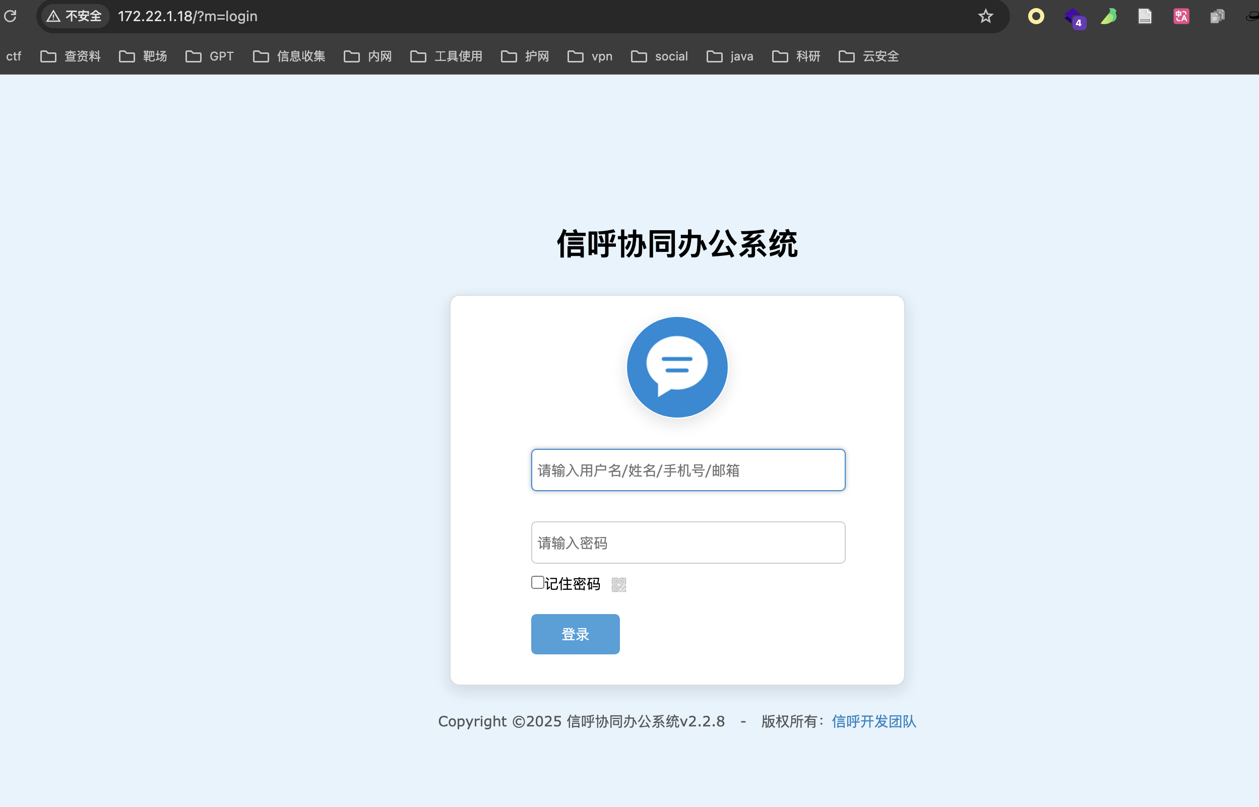 发现有一个信呼办公系统,上传代理,代理出来访问看看。