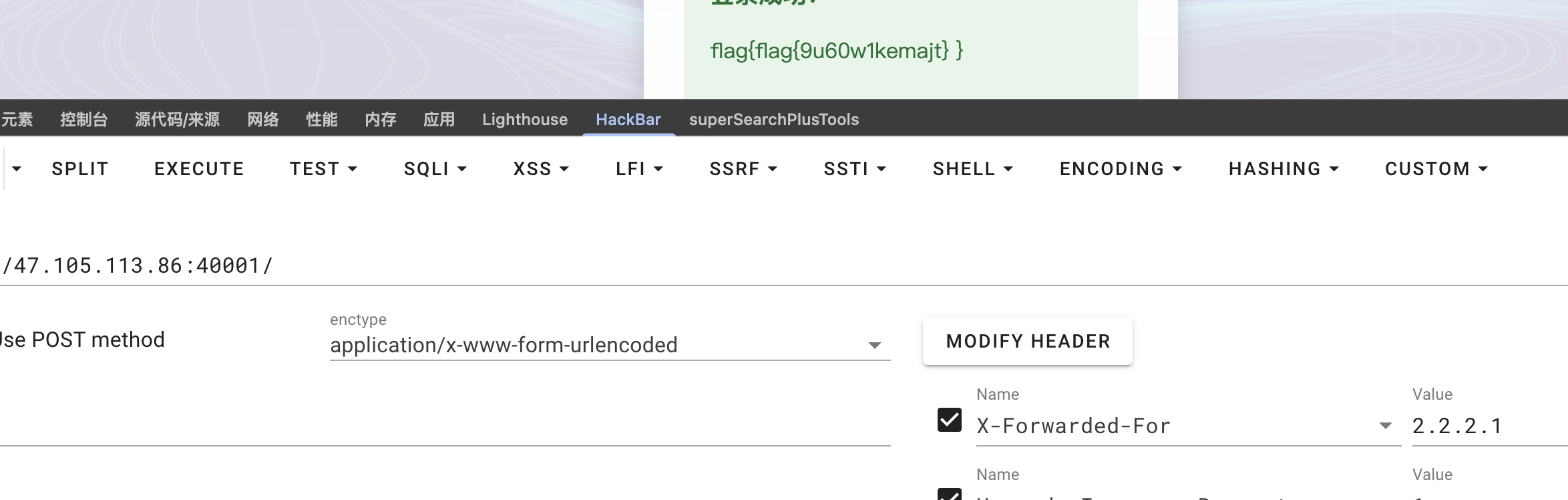 WEB YWB_Web_xff 查看源码知道要求ip是2.2.2.1即可